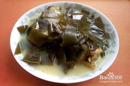 盛起,装入盘中。这样,一盘美味的海带鱼头汤就做好了。